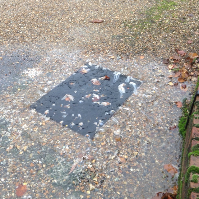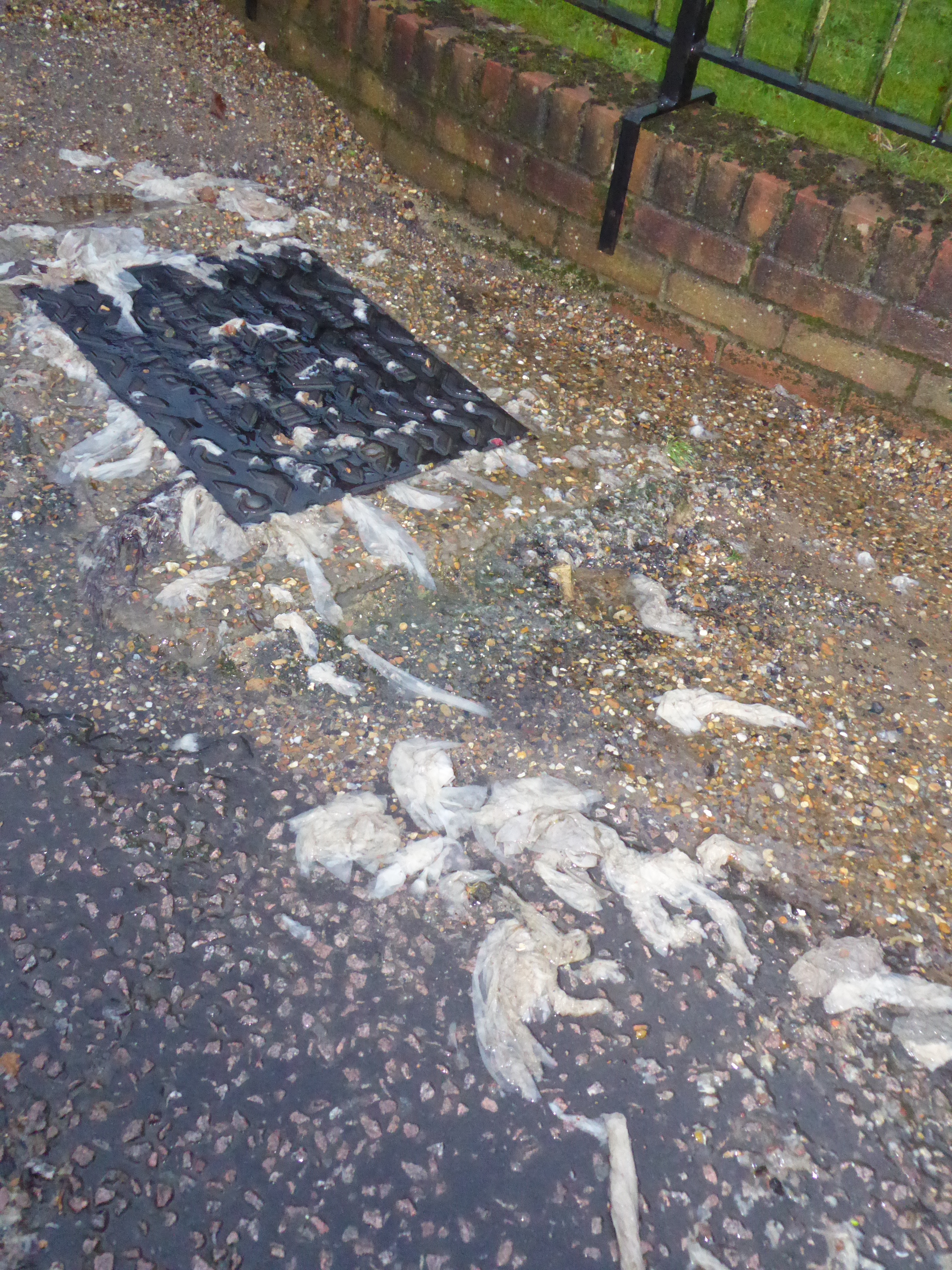 Attached are three pictures taken on 20th October. Two show toilet paper coming through the sewer covers and one of the highways drain with toilet paper on the grid.